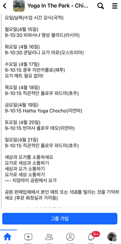 여기서 농부악하드공원 무료요가클래스 공지 확인.
