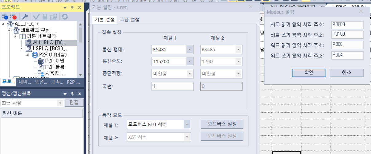 서버에서 모드버스 RTU설정하고 워드설정만 바꿔졌음