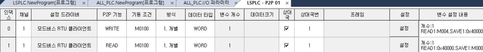워드 쓰기 영역 시작 주소를 P04로 바꾸면서 OUT PIN P40부터 나옴