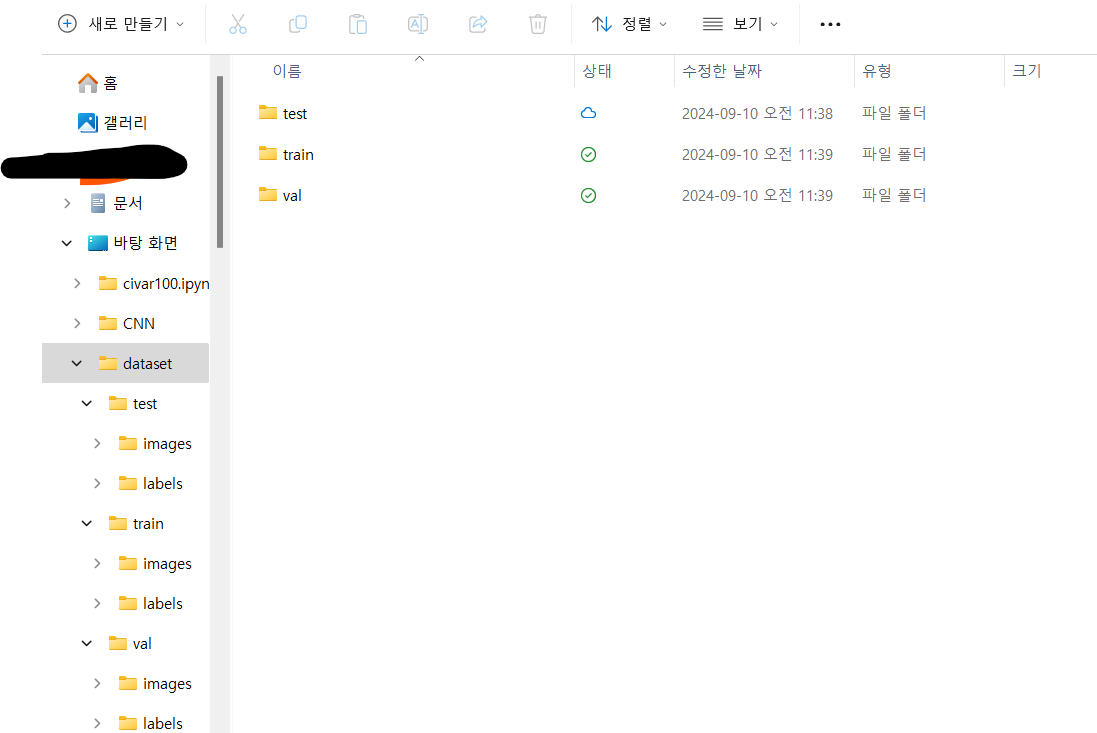 images와 labels로 나누어서 따로 다 넣어둬야 합니다.