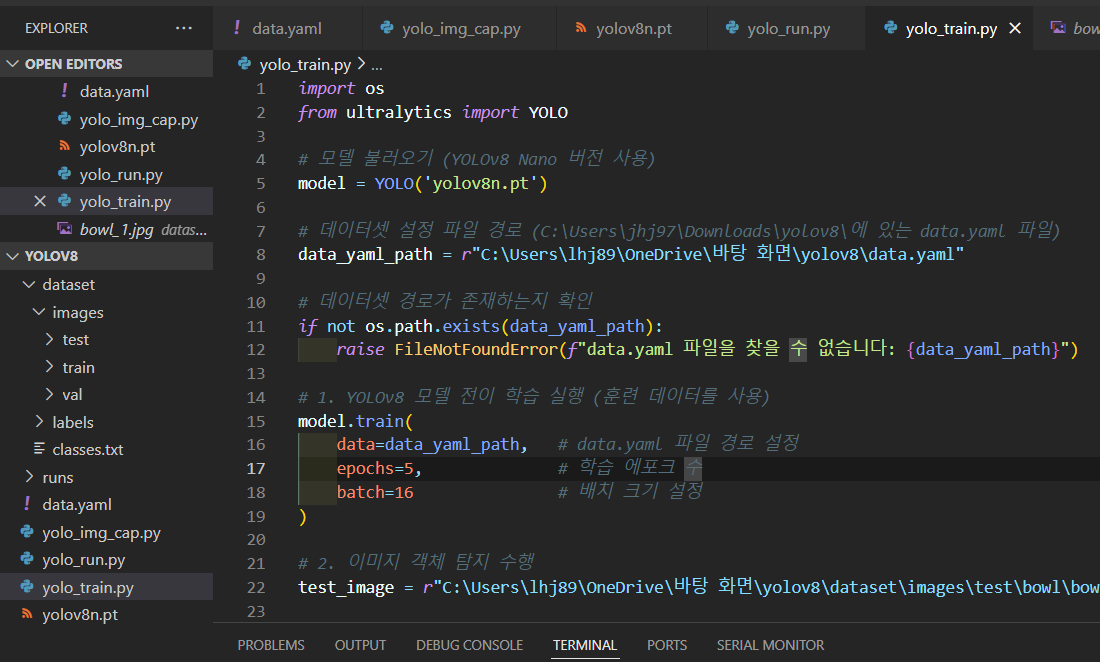 그 dataset.yaml에 기본경로 path설정 코드를 추가했습니다.