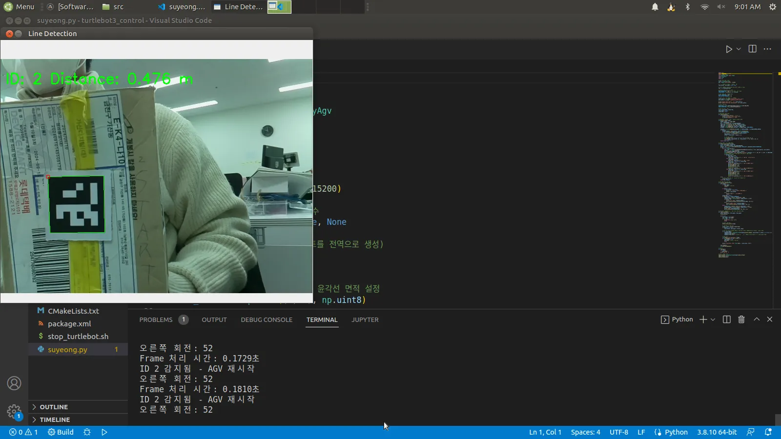 agv가 동작하면서 모니터에 나오는 마커 인식 모습