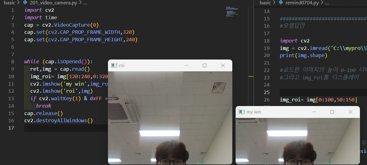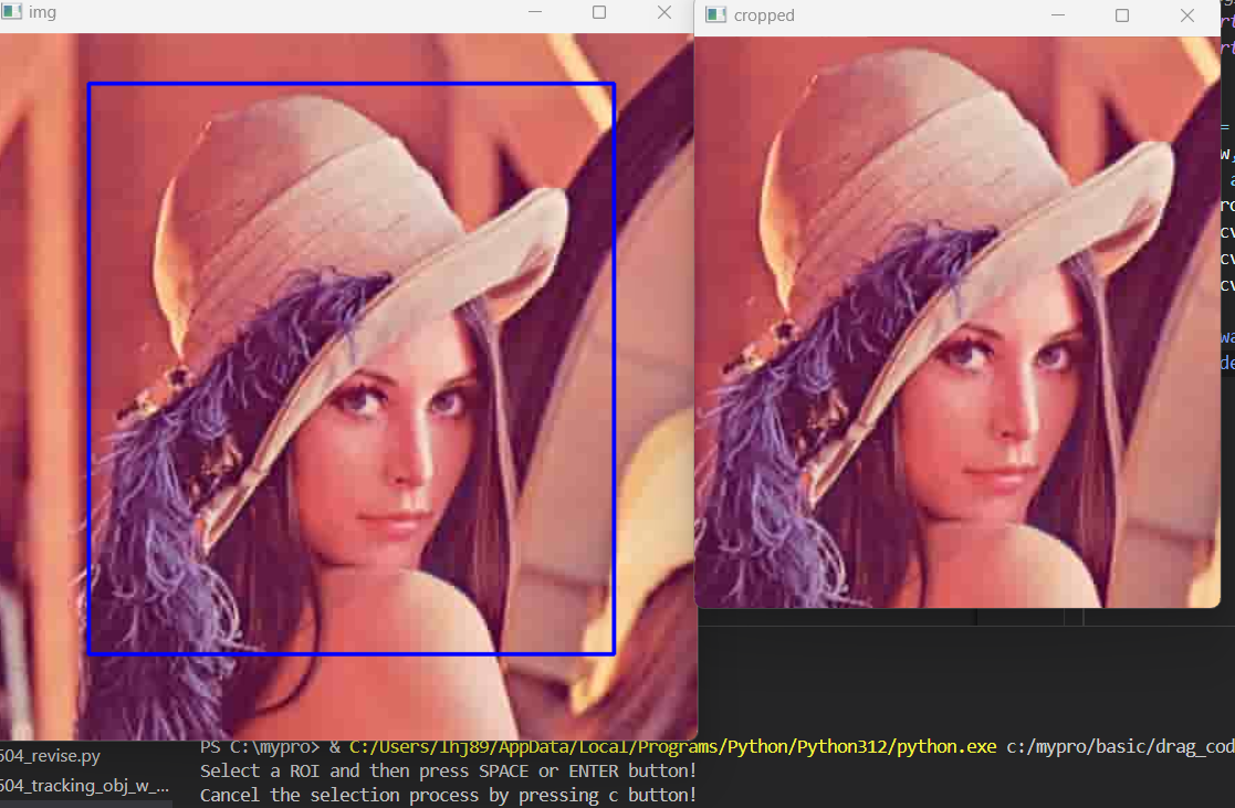 cv2.imshow('cropped', roi) # ROI 지정 영역을 새창으로 표시