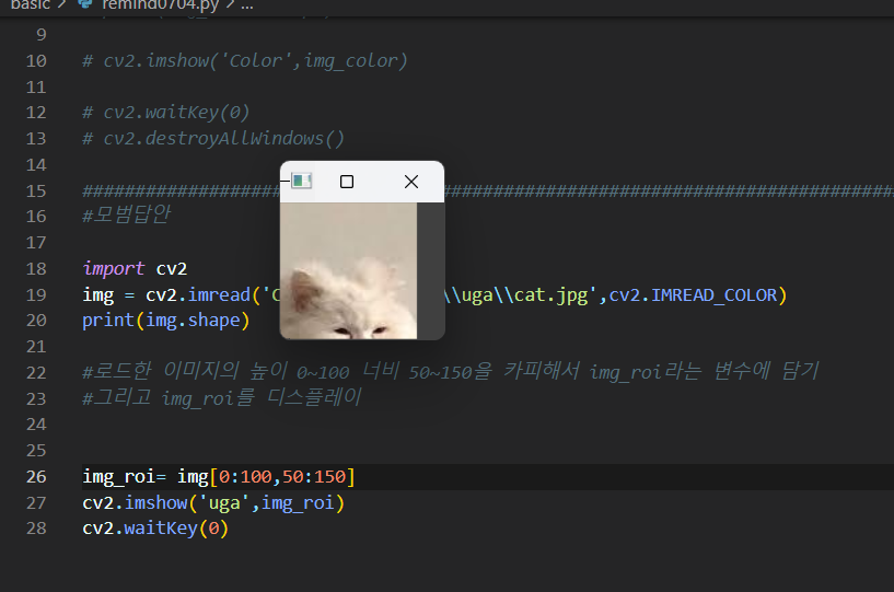cv2.imwrite(r'C:\\mypro\\basic\\uga\\cat.png',img_roi)