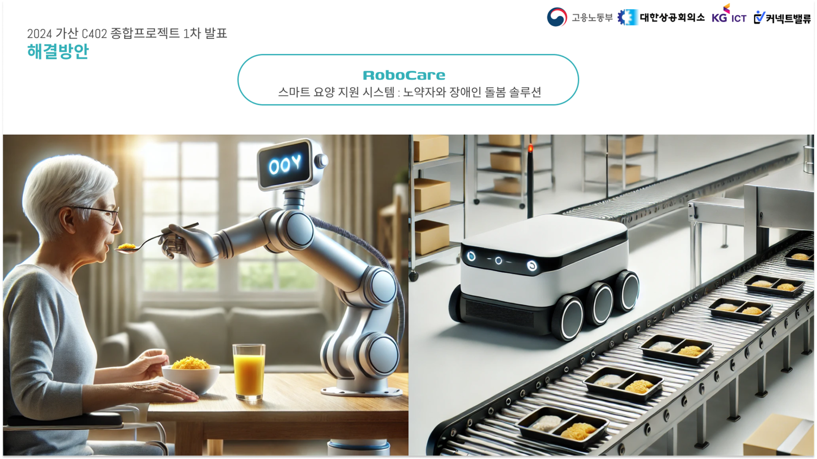 안녕하세요!!!오늘은 24/08/30에 프로젝트 발표했던 내용을 늦게나마 포스팅하려 합니다.ppt를 전부 공개는 어렵고 일부 보여드리면서 말씀드리겠습니다!! 여러분은 몸이 불편해보신 경험이 있으신가요?라는 주제로 발표를 시작해 나갔습니다.경험을 바탕으로..?사실 저는 PLC때도 말씀드렸지만 인대가 다쳐서오른손잡이인데 오른손을 쓰지 못했습니다. 20대 청년도 힘든 일상생활이 어려운데 평생 장애를 갖게 된 장애우나 노약자 분들은 얼마나 불편하고 힘드실지 감히 상상하기 어려웠습니다. 뿐만 아니라 저출산과 고령화가 맞물리면서사회적 약자의 돌봄 서비스는 불안정해져만 갑니다. 이를 해결하기 위해 저희는 RoboCare 스마트 요양 지원 시스템을 기획하였는데요.저희는 로봇 케어라는 이름으로 식사 제공을 포함한 반복적..